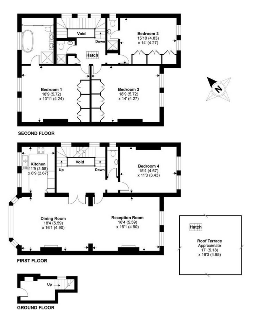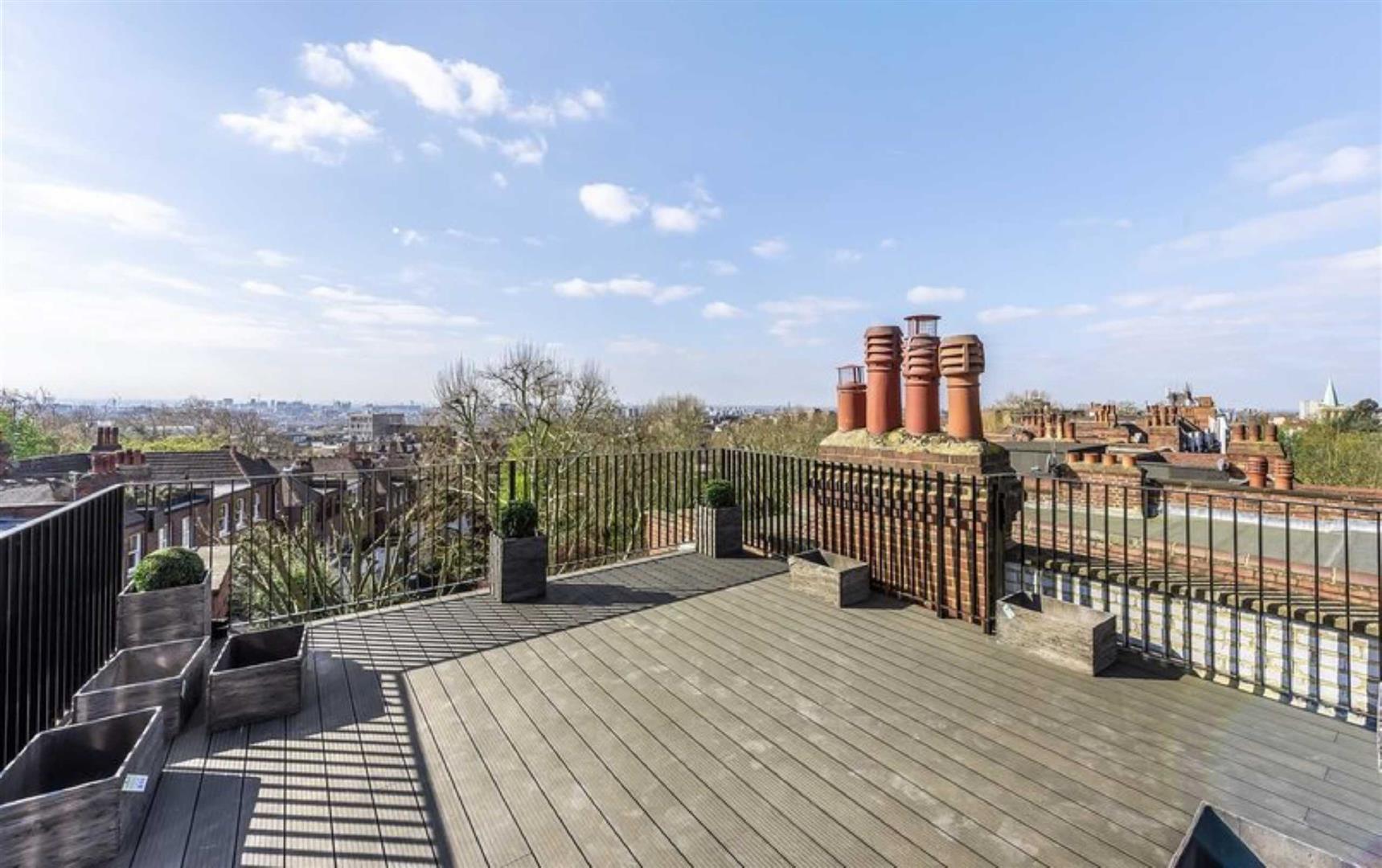 This fantastic, very spacious 4 double bedroomed, luxury apartment with a roof terrace, is set over the top two floors of a handsome red brick period building in Hampstead and offers panoramic views over London.