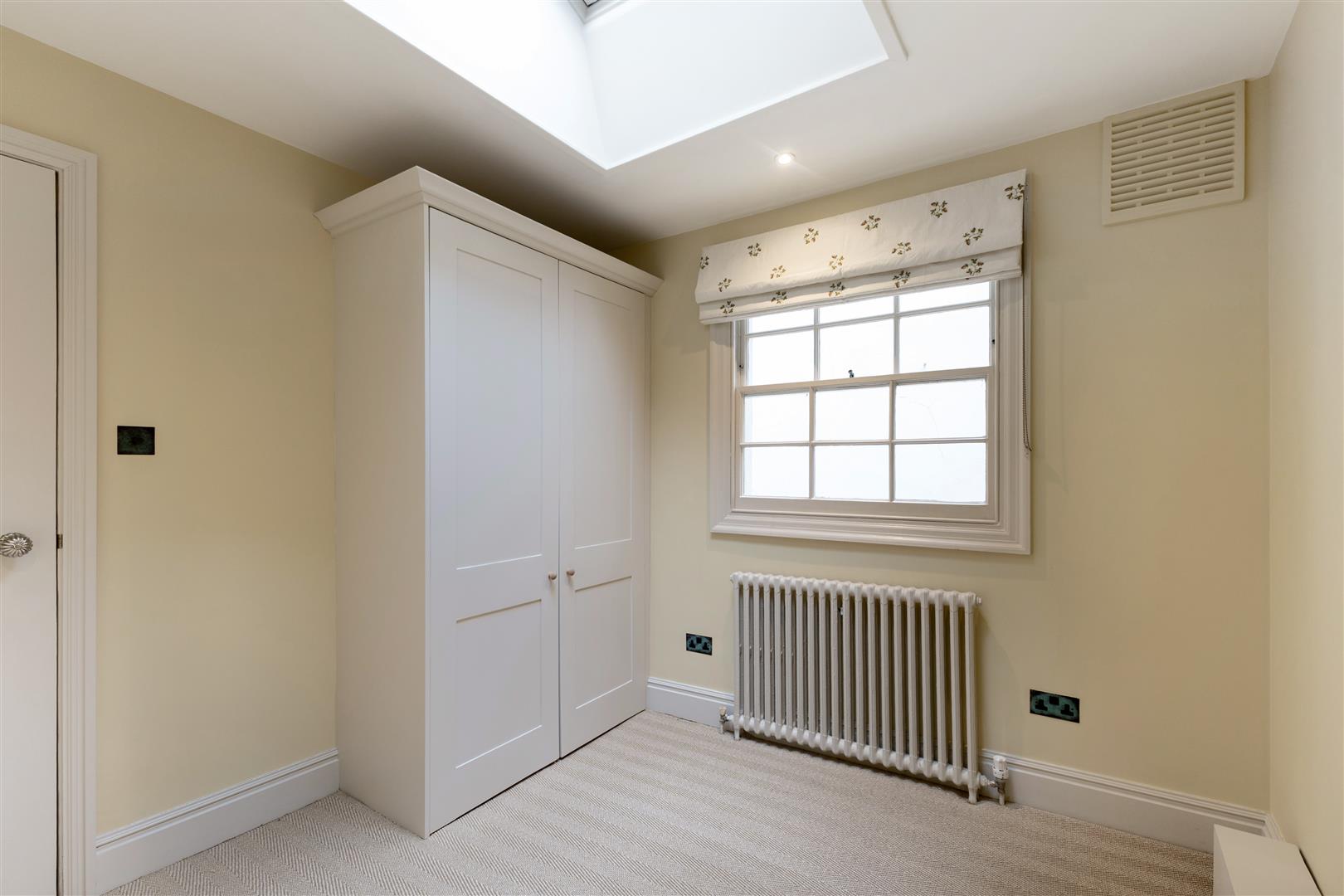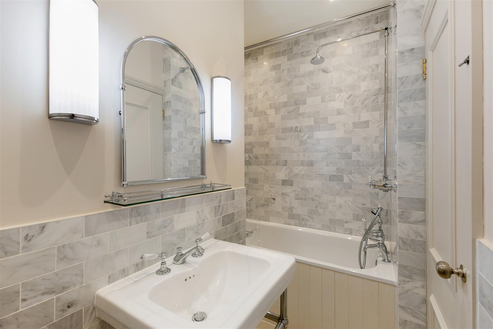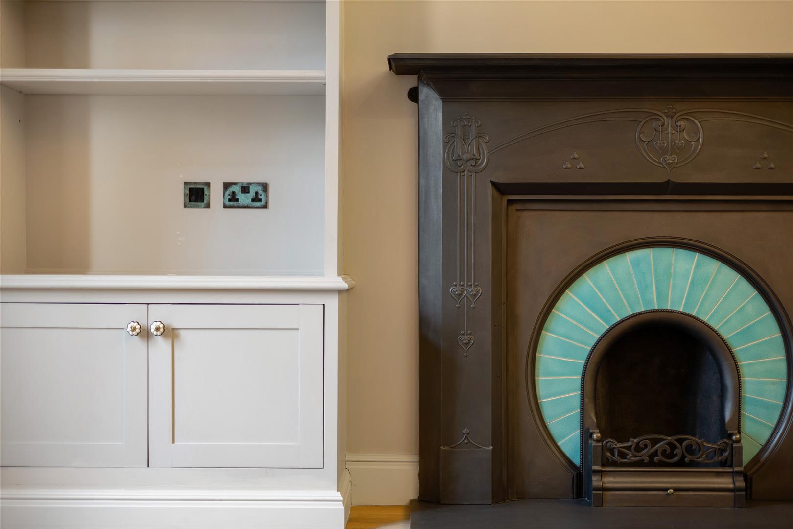 A beautifully decorated two-bedroom flat combining period charm and modern comfort with its own entrance porch and front door. This 745 sq ft apartment features high ceilings, an open-plan kitchen and living space with wooden flooring and a welcoming, Art Deco open fireplace. The bedrooms are fitted with newly laid sisal carpet, adding warmth and texture throughout. The principal bedroom is decorated in a classic Colefax and Fowler striped wallpaper, and the second bedroom features a skylight, bringing natural daylight into the room. The bathroom fittings are made by Aston Matthews, and the floor is Marmoleum. The shaker style kitchen is finished to a high specification, with bespoke cabinetry and quality appliances as well as a reverse osmosis water filtration system. The property has been freshly repainted throughout and feels fresh, stylish, and ready to move into.